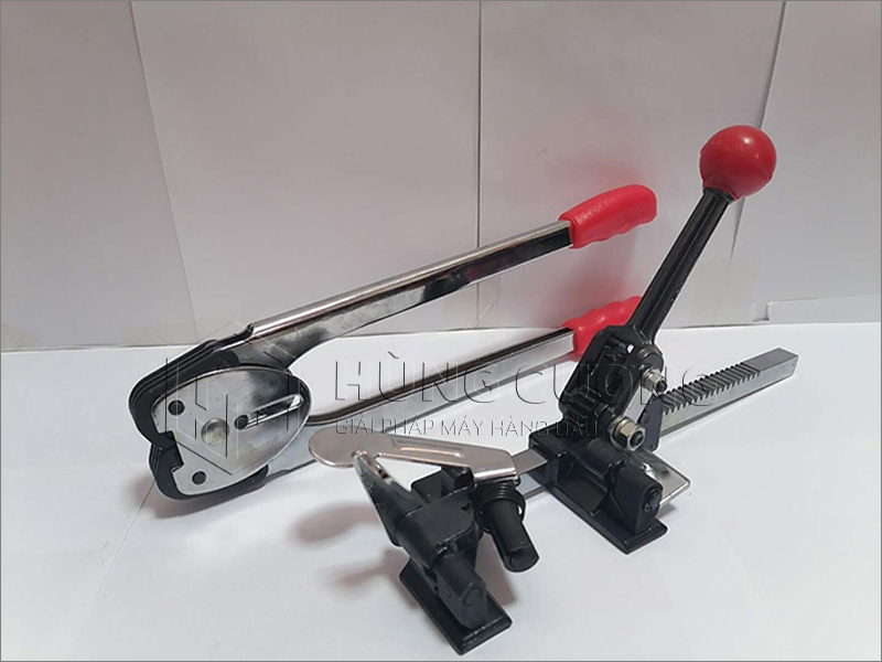 Bộ dụng cụ đai dây PP thù công bao gồm 01 dụng cụ dùng để kéo siết căng dây và 01 dụng cụ kìm kẹp bọ sắt dùng để kẹp chặt mối hàn. Dụng cụ có cấu tạo đơn giản, chắc chắn, dễ sử dụng, chi phí thấp. Dụng cụ chuyên dụng để đai dây PP, phù hợp với các khổ đai từ 12-16 mm.