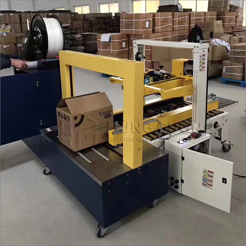 Máy đai thùng dạng thấp DBA-200L là phiên bản có bề mặt bàn làm việc thấp, phù hợp với các thùng, kiện có kích thước lớn, hàng cồng kềnh, khó khăn khi nâng đỡ lên bề mặt làm việc cao. Máy có 3 chế độ làm việc thủ công, tự động, đai dây liên tục, phù hợp với hầu hết nhu cầu đóng dây đai cơ bản.