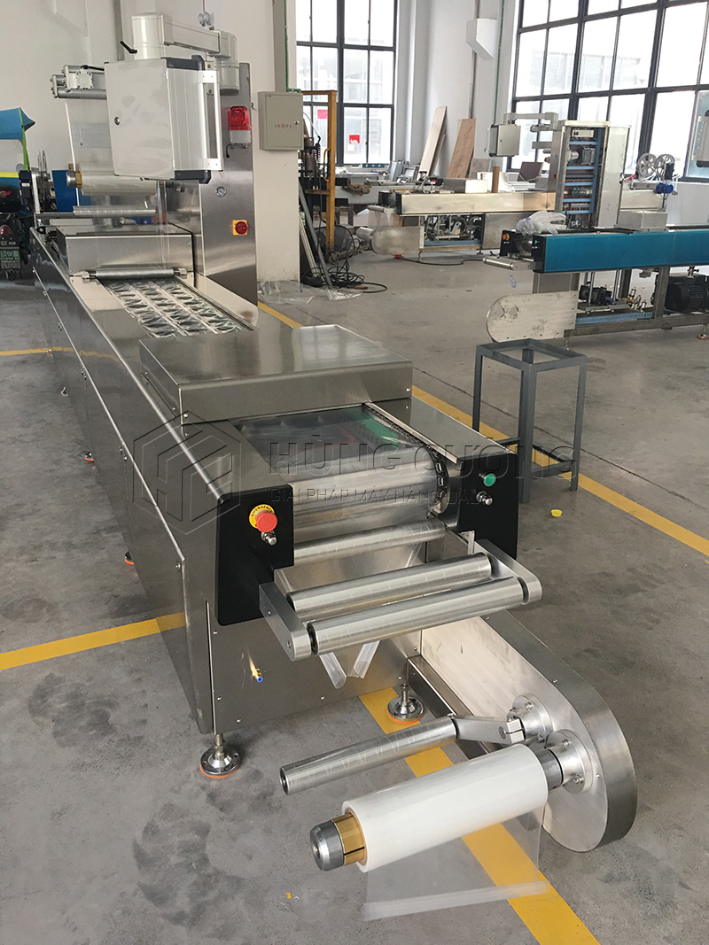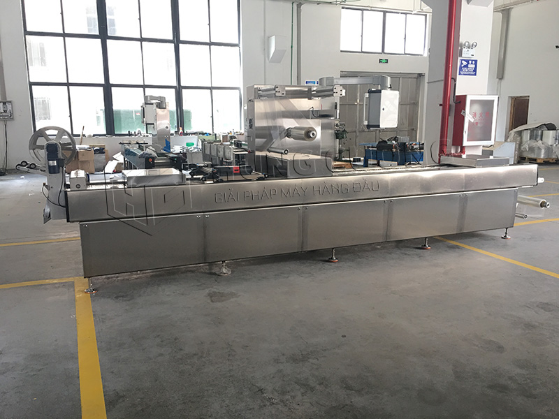 Máy dựa trên công nghệ đóng gói nhiệt định hình, tạo hình khuôn bao bì thông qua màng nhiệt co giãn. Máy cấu thành từ vật liệu inox 304 SUS cao cấp, hợp kim nhôm chất lượng cao có tính chịu nhiệt, chịu mài mòn tốt, đảm bảo tiêu chuẩn an toàn vệ sinh thực phẩm. Máy hỗ trợ nhiều loại sản phẩm khách nhau thông qua cơ chế hoán đổi khuôn mẫu.